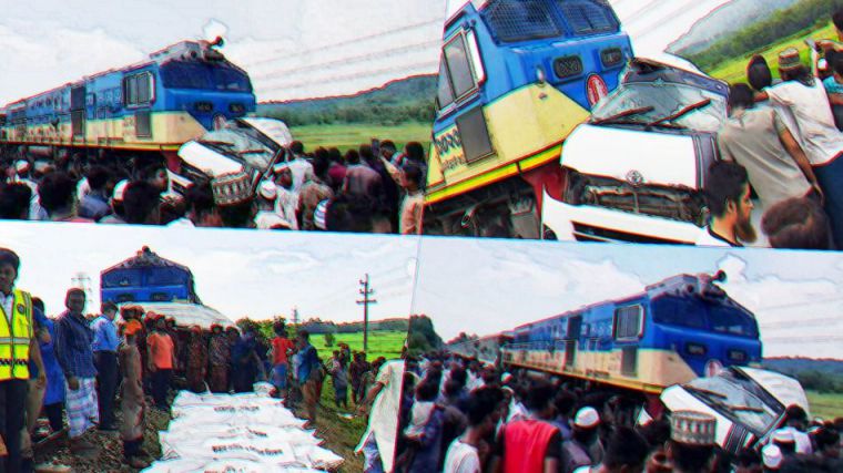 Un tren arrolló a un minibús cuando éste intentaba cruzar un paso a nivel en la localidad bangladeshí de Mirsharai, situada en el este del país asiático.