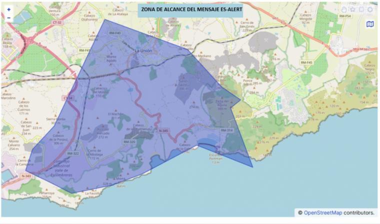 Las poblaciones que recibieron el mensaje ES-Alert son Alumbres, Escombreras y Portmán.
